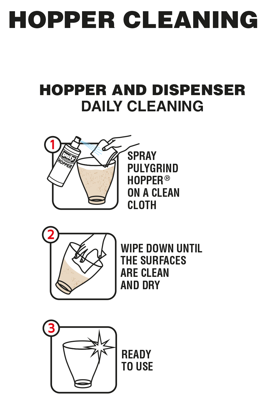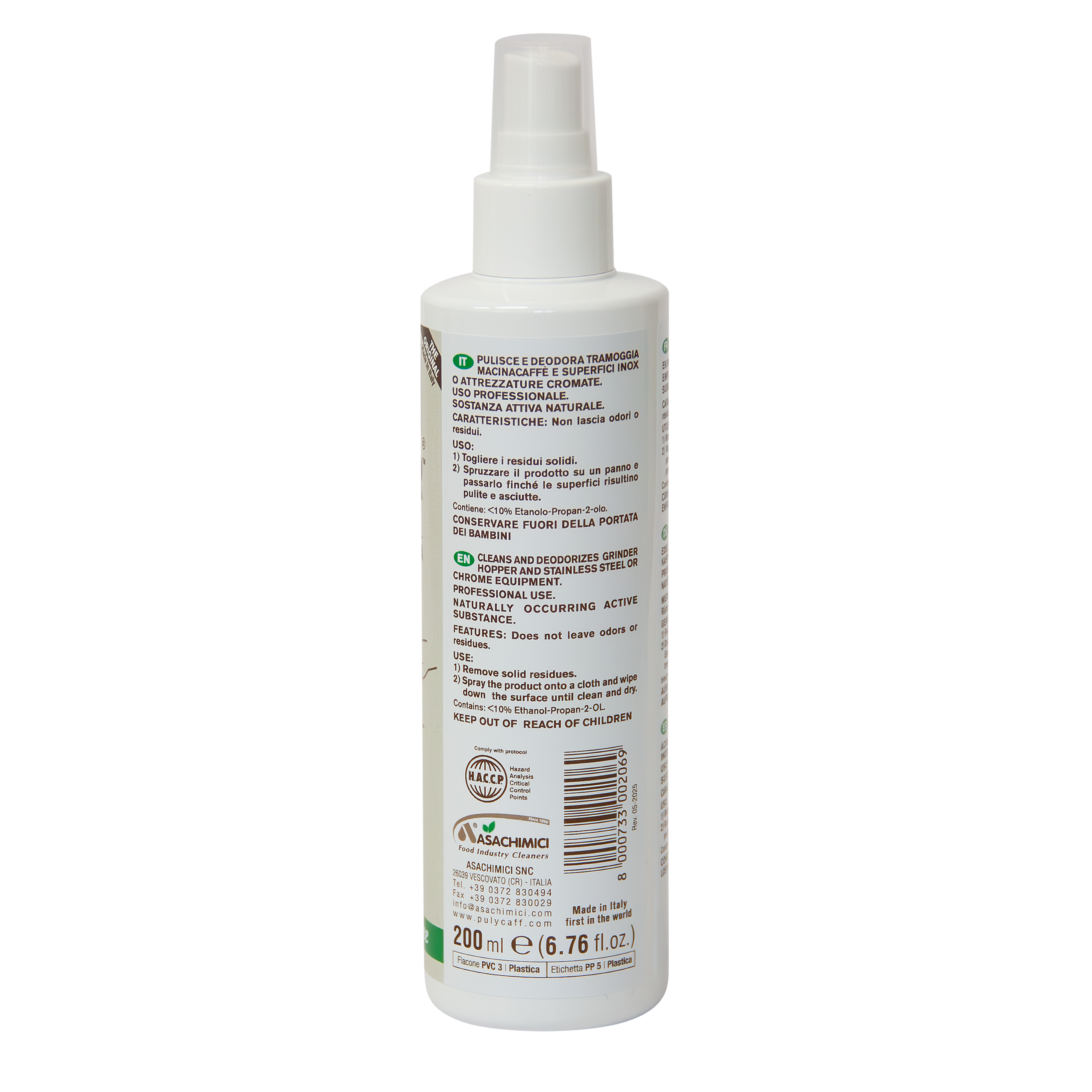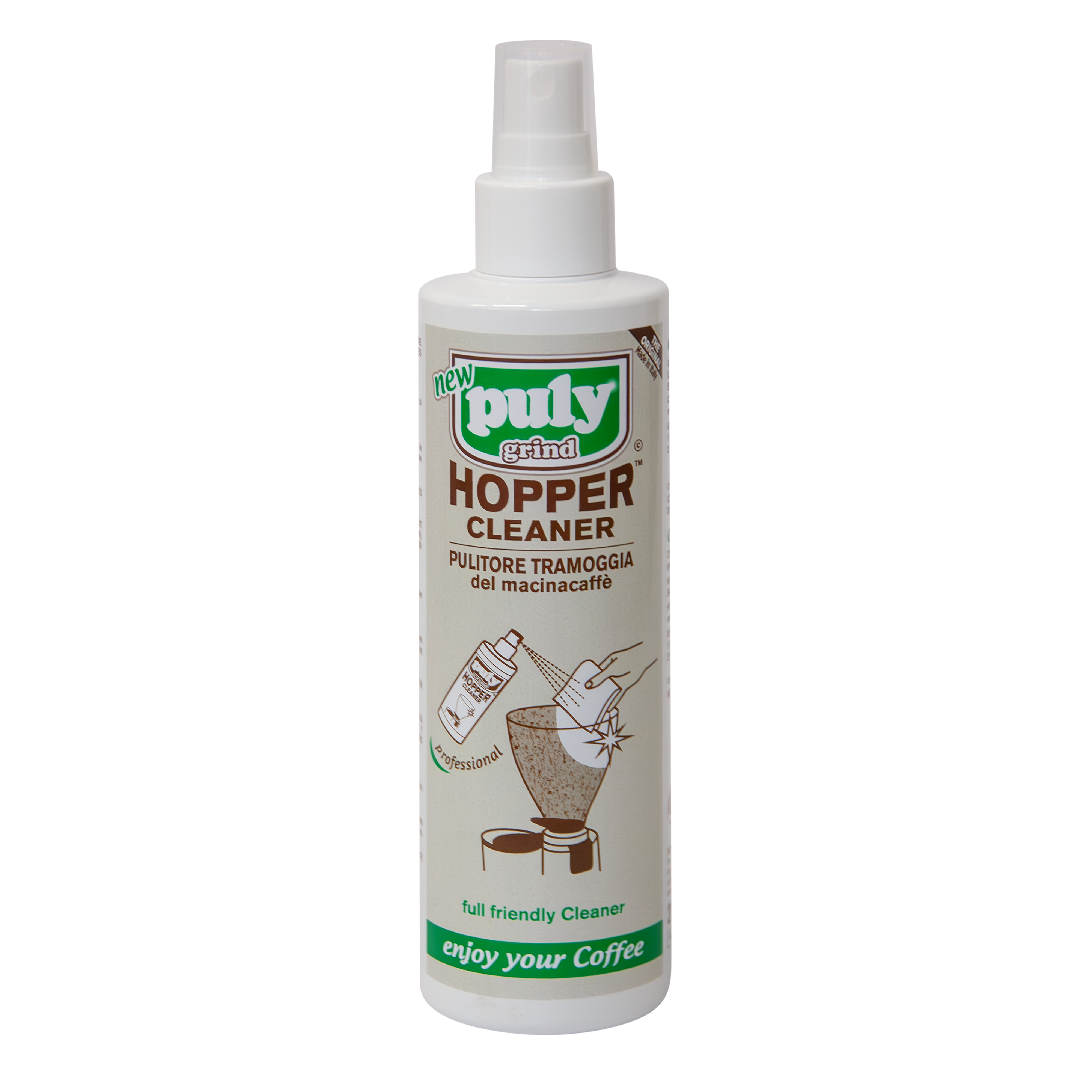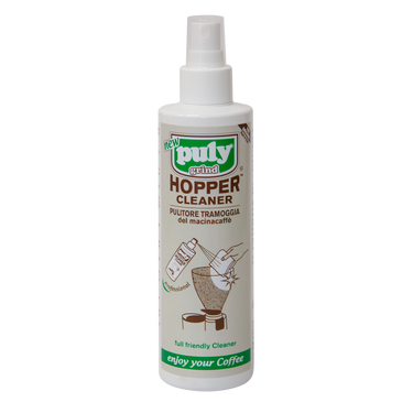 De Puly hopper cleaner is speciaal ontwikkeld om aanslag van vetten en oliën in de hopper van je koffiemolen te verwijderen. De spray is gemaakt van natuurlijke ingrediënten.